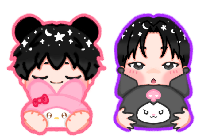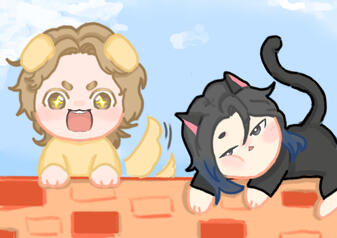 | OC, fanart, animal, couple, chibi, sketch, ID Photo, blood (not detailed), photo to illustration (no public figure), sticker sheet |
